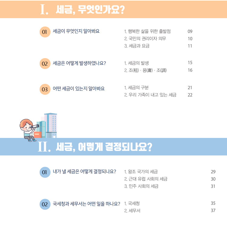 2022년부터 세금 교육이 필수 교과 과정에 포함됐습니다. 학생들은 교육자료를 미리 받아 예습 용도로 사용하시고, 직장인들은 pdf 파일을 휴대폰에 다운받아 출퇴근 길 등, 자투리 시간을 활용해 틈틈히 경제 공부에 매진하면 좋겠습니다.