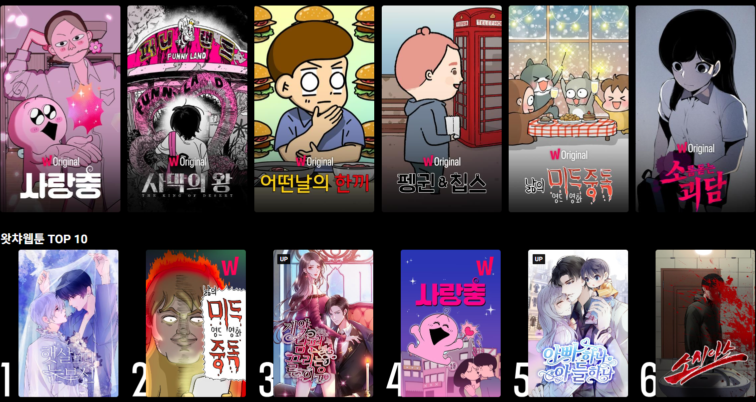 - 특이하게도 웹툰 코너가 있었습니다.