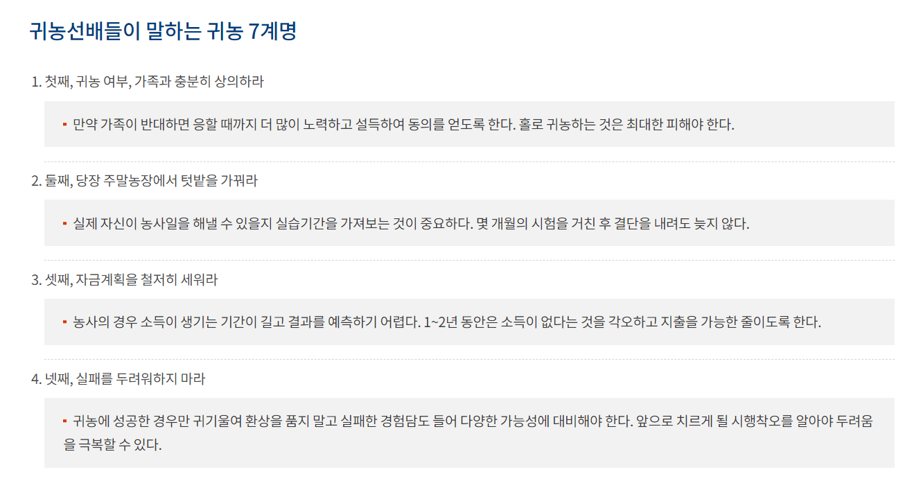- 4. 부모 기반이 없으나 귀농 의지가 있는 청년들은 우수후계농 같은 정책제도를 반드시 활용해라.